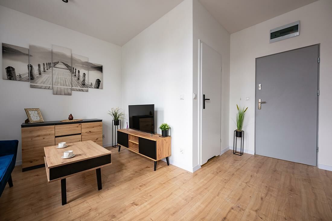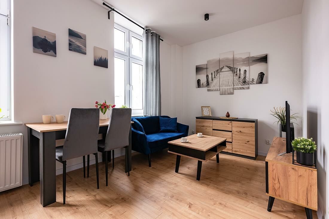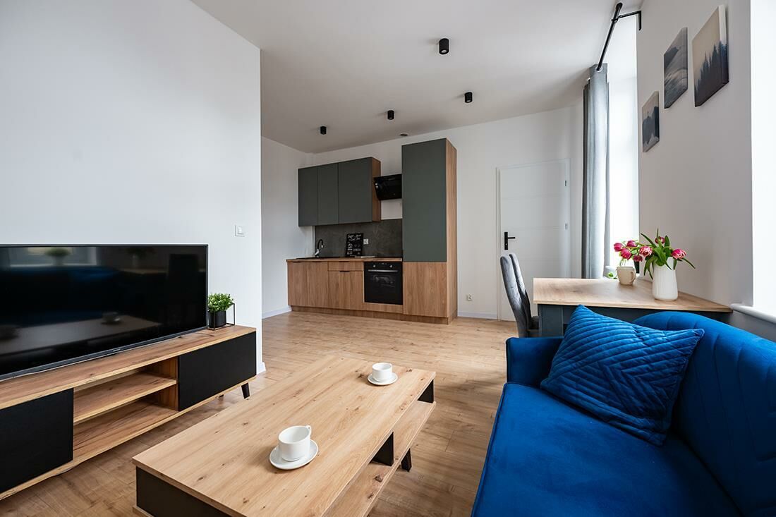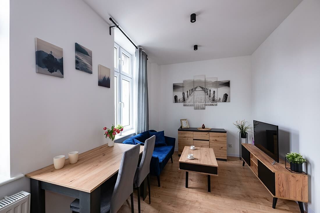 W cenie mieszkania pozostaje zabudowa kuchenna, stół, krzesła, stolik i telewizor.