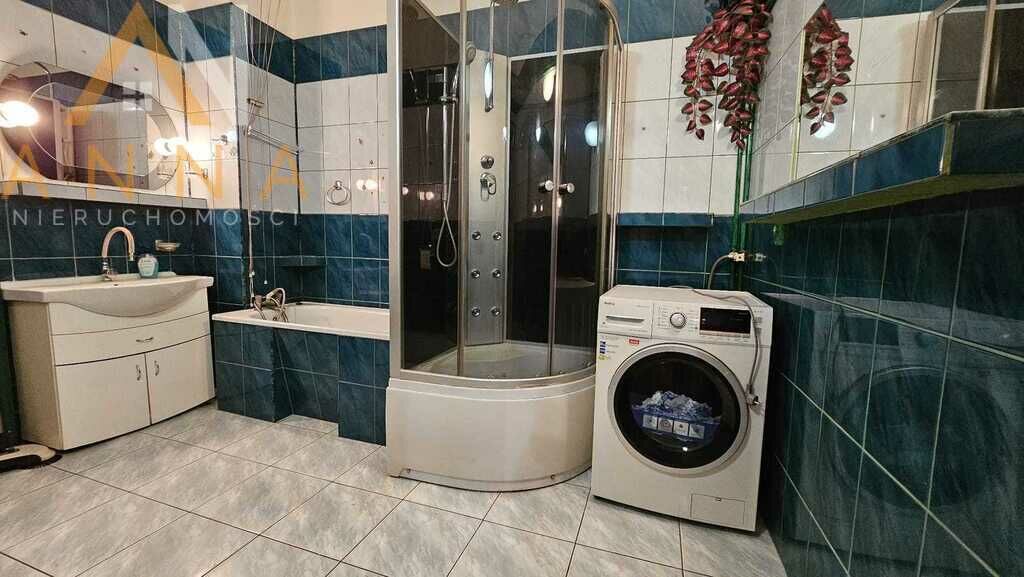 przestronna łazienka wyposażona zarówno w wannę, jak i kabinę