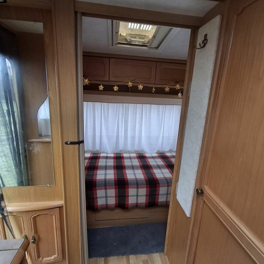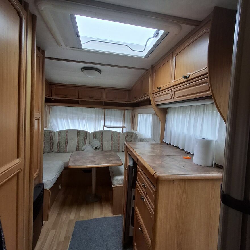 Sprzedam zadbaną przyczepę zimową niemieckiej firmy Tabbert z 2001 r. -mercedesa wśród przyczep, Przyczepa jest sucha i szczelna, rama jak z fabryki. Szyby okienne podwojne, duże uchylne panoramiczne okno dachowe. Ogrzewanie gazowe, zbiornik wody 50 l , pompka wody i podgrzewacz. Kuchenka , lodowka gaz.- elektryczna , toaleta kasetowa- wszystko sprawne.W częsci przedniej przyczepy wygodna rozkładana i podwyższana kanapa oraz rozkladany stol, Szafki kuchenne solidne, nie ze sklejki. Rolety, moskitiery, szyberdach. Posrodku łazienka.W tylnej czesci przyczepy mały pokoik z kanapą oddzielany od reszty przyczepy harmonijkowymi drzwiami.Mnóstwo półek i schowków. Na dyszlu zamontowany bagażnik na rowery.