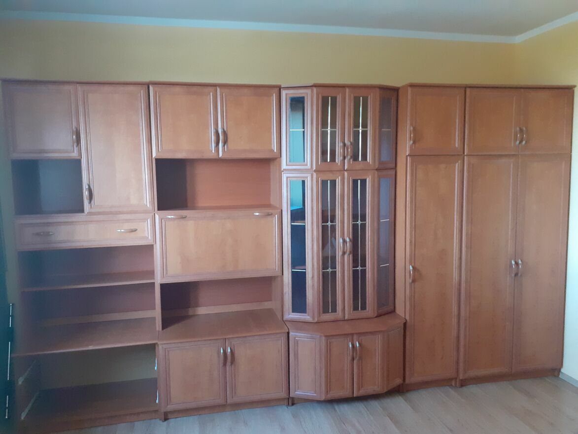 Sprzedam meblościankę. Składa się z 5 elementów. Szafa dwudrzwiowa z górną półką, szafa jednodrzwiowa z górną półką, witryna szklana, szafka z barkiem oraz szafa z szufladami. Stan dobry. Cena do negocjacji.Alicja