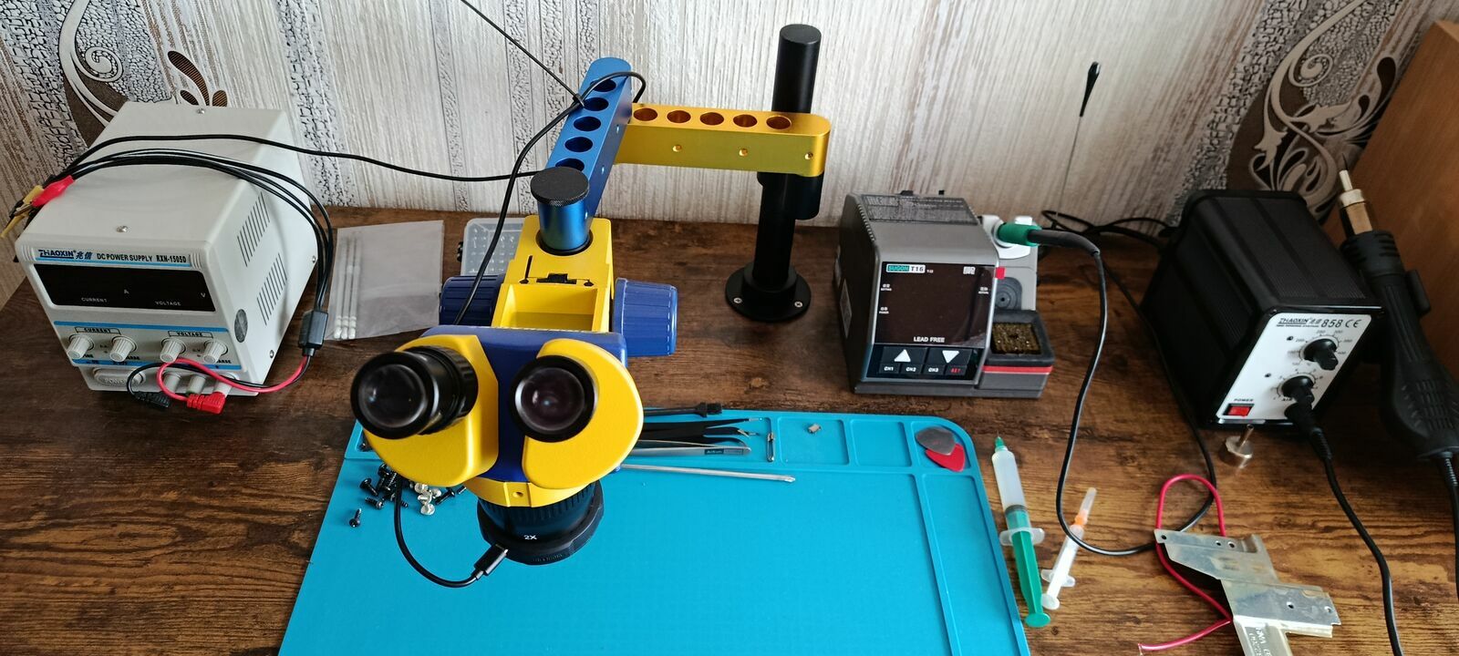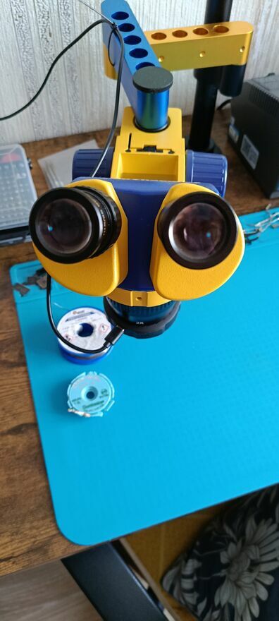 Witam,mam na sprzedaż wyposażenie domowego warsztatu elektronika/serwisanta :- Mikroskop Mechanic Mc24s binokular ( Minionek) stan idealny-kompletny,fabryczny zestaw jak nowy z fabrycznymi okularami 10X/25 ,używany sporadycznie wraz z fabrycznym stojakiem,osłonkami na okulary, oświetlaczem( z regulowaną barwą oraz jasnością oświetlenia), plus dokupionym osobno dedykowanym ramieniem mocowanym do blatu, dzięki któremu jest możliwa regulacja we wszystkich płaszczyznach.W komplecie oczywiście wszystkie śrubki do montażu. Całość 100 proc sprawna w eleganckim stanie