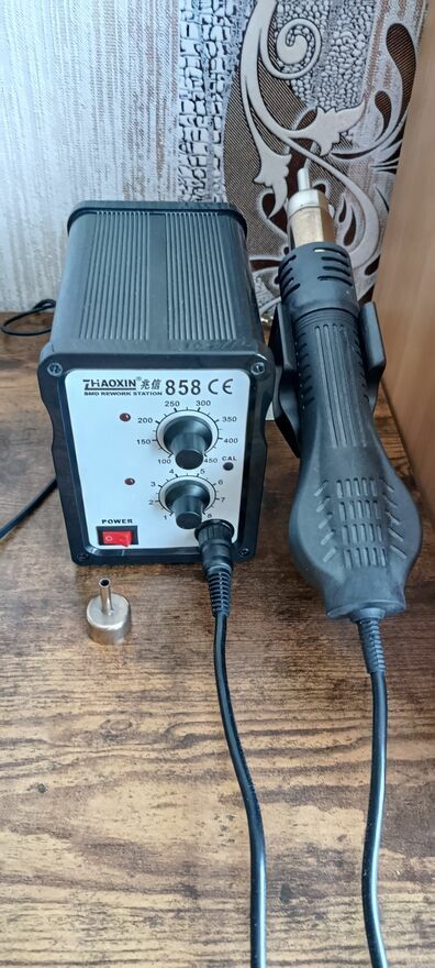 - Lutownica Hot Air Zhaoxin 858, 100 proc sprawna,stan również idealny, z regulacja temp. 0-450 nadmuch 0-8 i dwiema dyszami,daje rade bez problemu wylutować i lutować rezystory, kondensatory, tranzystory itp. W komplecie stacja,kabel zasilajacy,dysze,papiery,karton.
