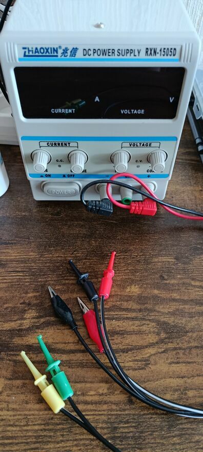 Zasilacz serwisowy Zhaoxin RXN 1505D o maks prądzie 15V 5A w stanie również wzorowym, z kablem zasilającym i kablem z końcówkami jak na zdjęciu.