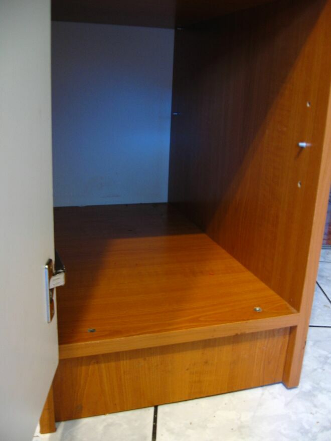 Wewnątrz znajduje się 8 głębokich, pojemnych półek. Wysokość całkowita wynosi 220 cm. Szerokość 35 cm. Głębokość 60 cm. Wysokość drzwiczek 70 cm. Podstawa u dołu wysokość 10 cm. Odbiór Inowrocław-Rąbin.